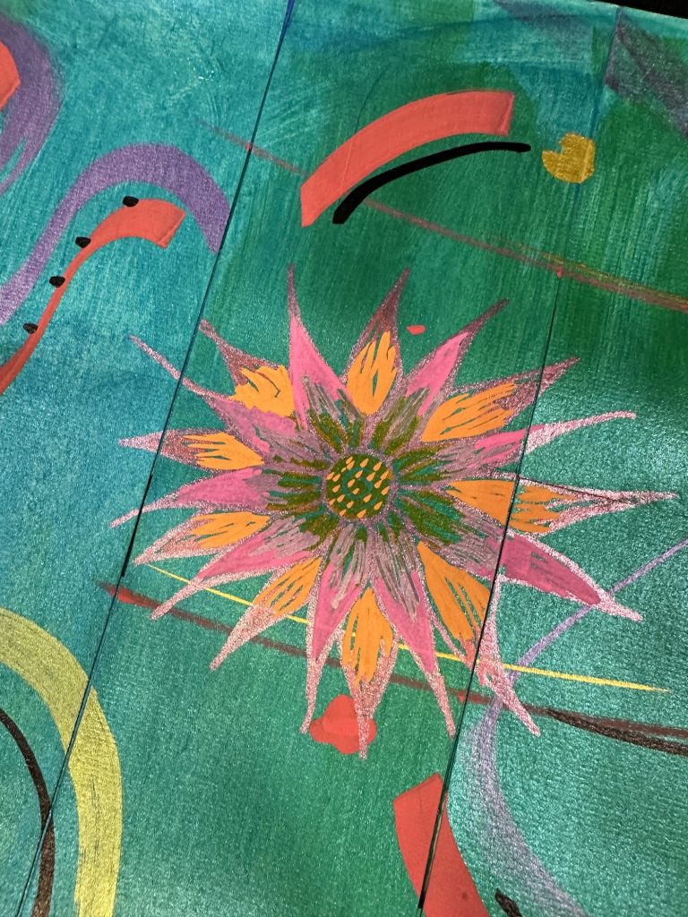 My back and legs and arms ached as I taped and re-taped the pieces of the canvas, measuring and re-measuring, knowing I had to get it right. Because the end of the story wasn’t a single intact painting. The end of the story was separation: taking the canvas apart without damaging anyone’s contribution, honoring each fragment as both individual and part of the whole.