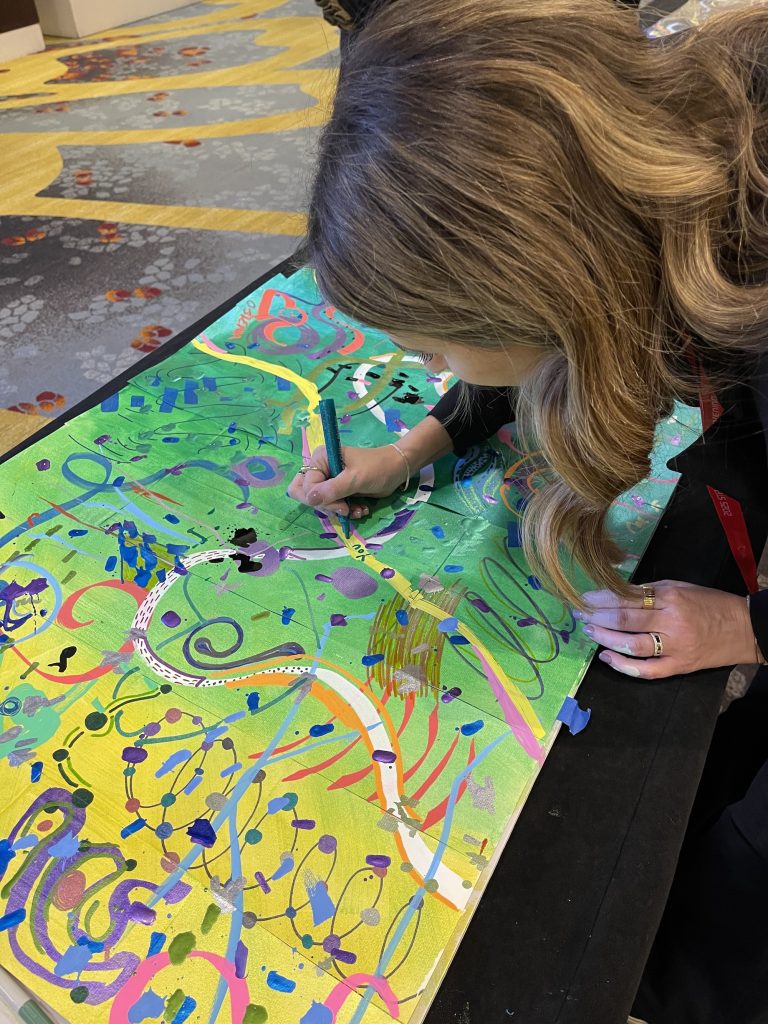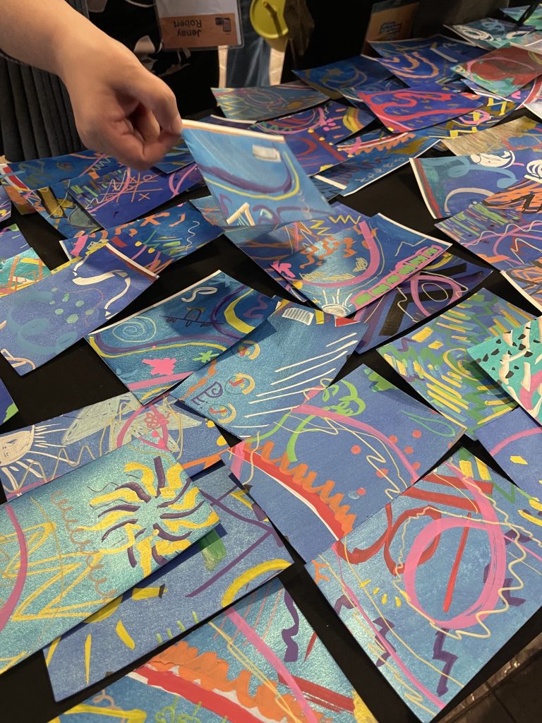 Everything came together in time, and the doors opened for the participants to meander in. I remember teaching a few early arrivals how to begin: how to choose a prompt, how to make one abstract mark without overthinking it, how to treat the canvas like a shared space rather than a personal assignment.